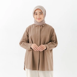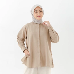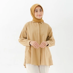 Memiliki cuttingan straight dengan slit yang dilengkapi dengan open side button (kancing buka) yang membuat kemeja ini memiliki siluet H namun tetap longgar