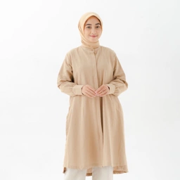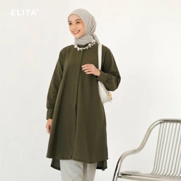 Produk Elita Black Label berupa long tunic dengan detail open side button di bagian slit samping berbahan linen yang nyaman dan cocok digunakan untuk kegiatan formal maupun kegiatan daily lainnya