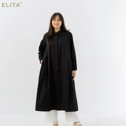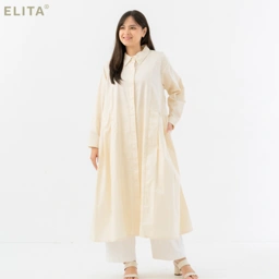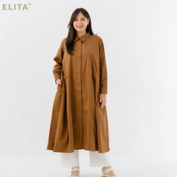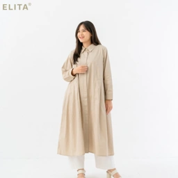 - Detail midi dress dengan lipitan pada bagian pinggang , kerah kemeja dan saku fungsional di bagian samping