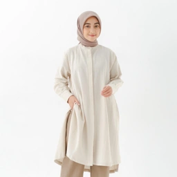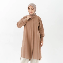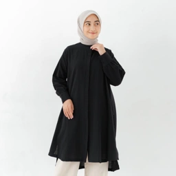 Produk Elita Black Label berupa long tunic dengan detail open side button di bagian slit samping berbahan linen yang nyaman dan cocok digunakan untuk kegiatan formal maupun kegiatan daily lainnya