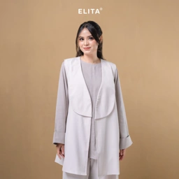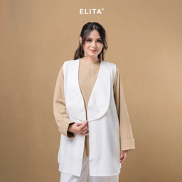 - Panjang vest medium to long, menutupi pinggul hingga paha, cocok sebagai outer modest wear.