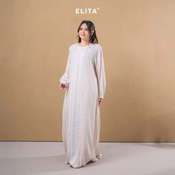 - Memiliki aksen renda dekoratif vertikal pada bagian tengah (center front), renda memanjang dari bahu hingga hem bawah yang menerikan efek visual tubuh terlihat lebih tinggi dan ramping